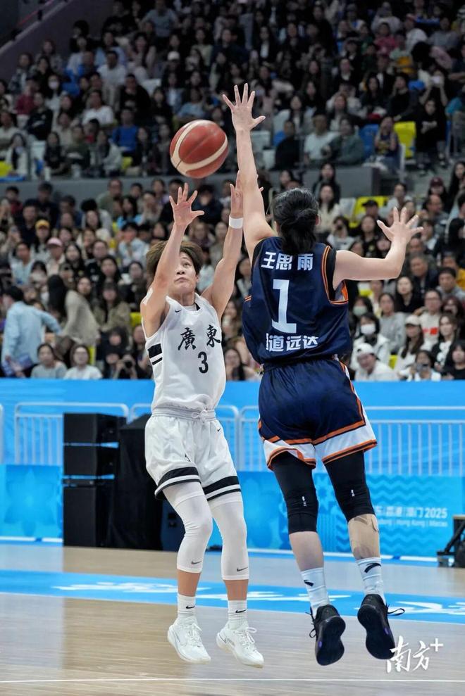 决赛中,广东女篮以26:19领先7分结束首节。第二节开场后,四川队利用广东队失误增多和命中率降低,将比分追至28平。之后双方比分交替上升,广东队以43比39结束上半场。