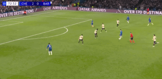开场之后,巴萨后场基本被压着打,切尔西的进攻持续形成冲击力,一波接一波。