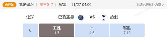 竞足 周三017 欧冠巴黎圣曼VS热刺