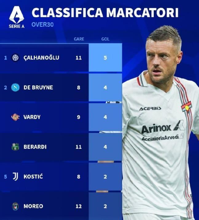 这位昔日英超金靴,在比赛第35分钟和第50分钟两度攻破博洛尼亚队的球门,再一次展现了他标志性的冷静与效率。这两个进球不仅帮助球队拿下关键三分,更让他跻身意甲历史特殊纪录的行列。瓦尔迪成为了意甲联赛历史上第二位,在年满38岁之后代表一支升班马球队单赛季打进4球的球员。上一个达成这一成就的,还是2004/05赛季效力于卡利亚里队的意大利传奇佐拉,当时他单赛季打进了9球。如今,瓦尔迪以4球追随着前辈的脚步,证明年龄不过是一个数字。