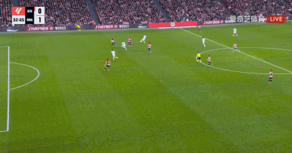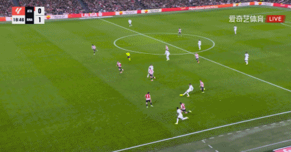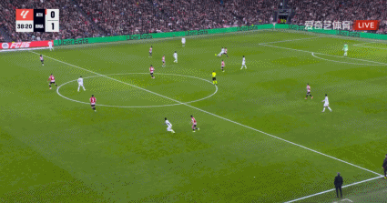 38’ 米利唐后场长传,维尼修斯反越位成功,面对门将的射门角度太正;