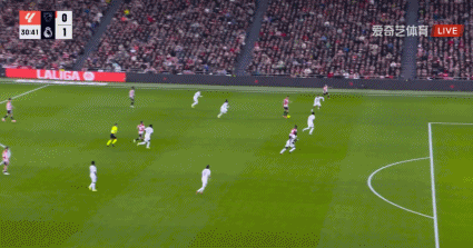 33’ 巴尔韦德过顶吊传,维尼修斯过掉出击的乌奈·西蒙,随后小角度射门打在立柱上弹出底线;