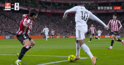 5’ 皇马很快再起攻势,维尼修斯的打门被乌奈·西蒙扑出;